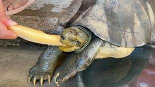 终于,小乌龟鼓起勇气,用小嘴轻轻地咬了一口哈密瓜。那一刻,它的表情瞬间变得幸福无比。那甜蜜的味道仿佛在它的心中流淌,让人忍不住为它欢呼。
